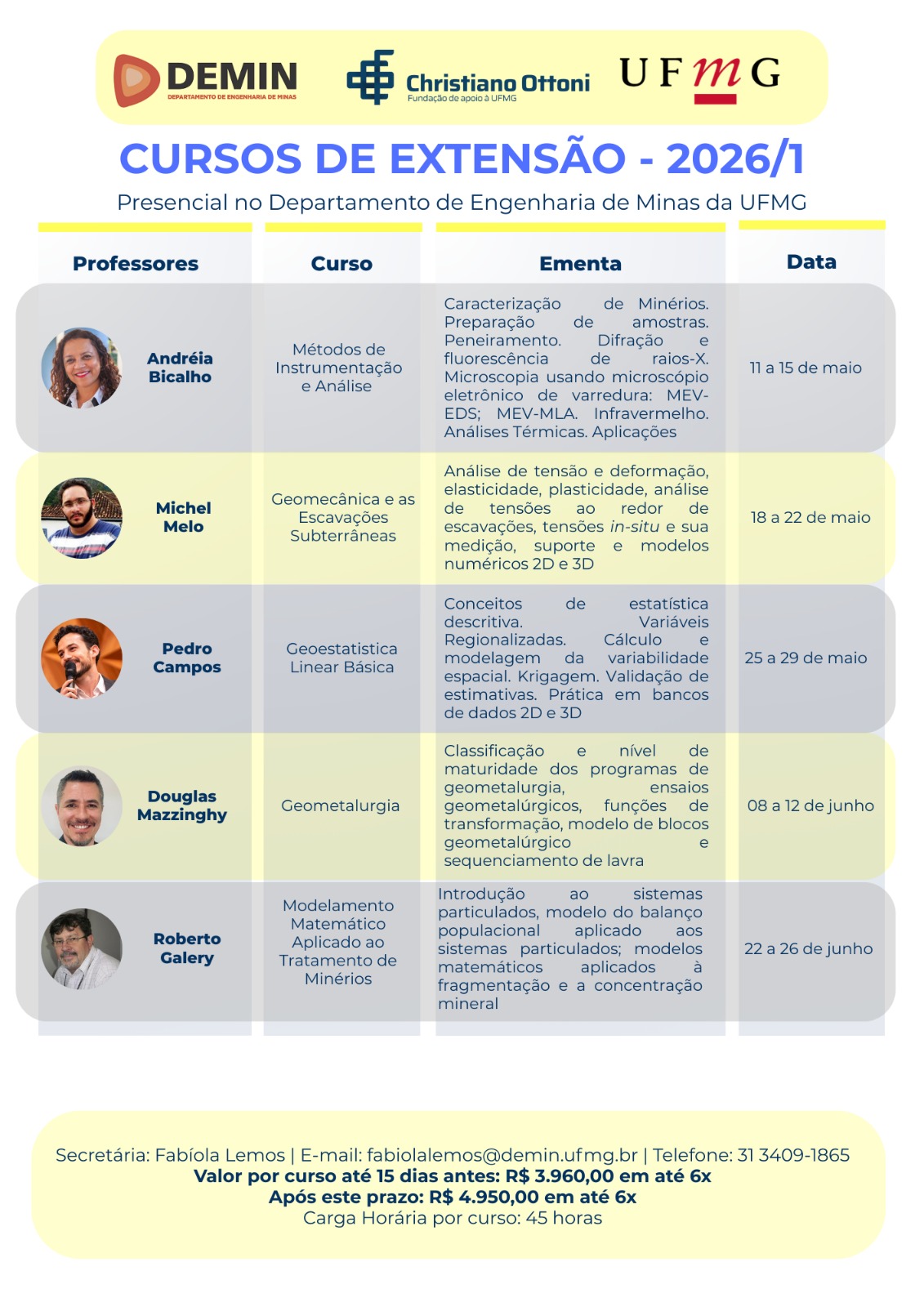 Contato de equipe do curso: Fabíola Lemos E-mail: fabiolalemos@demin.ufmg.br Telefone: 3409-1865 |